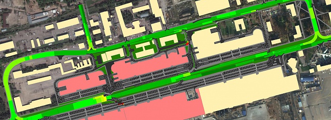 В рамках данного проекта была выполнена работа по определению перспективных нагрузок прибытия/убытия пассажиров и транзитного транспортного потока с учетом поэтапного ввода в эксплуатацию терминалов. Анализ и апробация проектных решений выполнены с применением инструмента имитационного моделирования в программном продукте PTV Vision Vissim. На первом этапе проведена оценка плановых решений элементов привокзальной площади Северного терминального комплекса с учетом стадийности ввода в эксплуатации. На втором и третьем этапе произведена оценка транспортно-коммуникационного каркаса в радиусе 5 км от Северного терминального комплекса. На четвертом этапе разработаны концептуальные варианты формирования единого привокзального пространства на территории Северного терминального комплекса с учетом переключения основного транзитного трафика на иные элементы улично-дорожной сети.