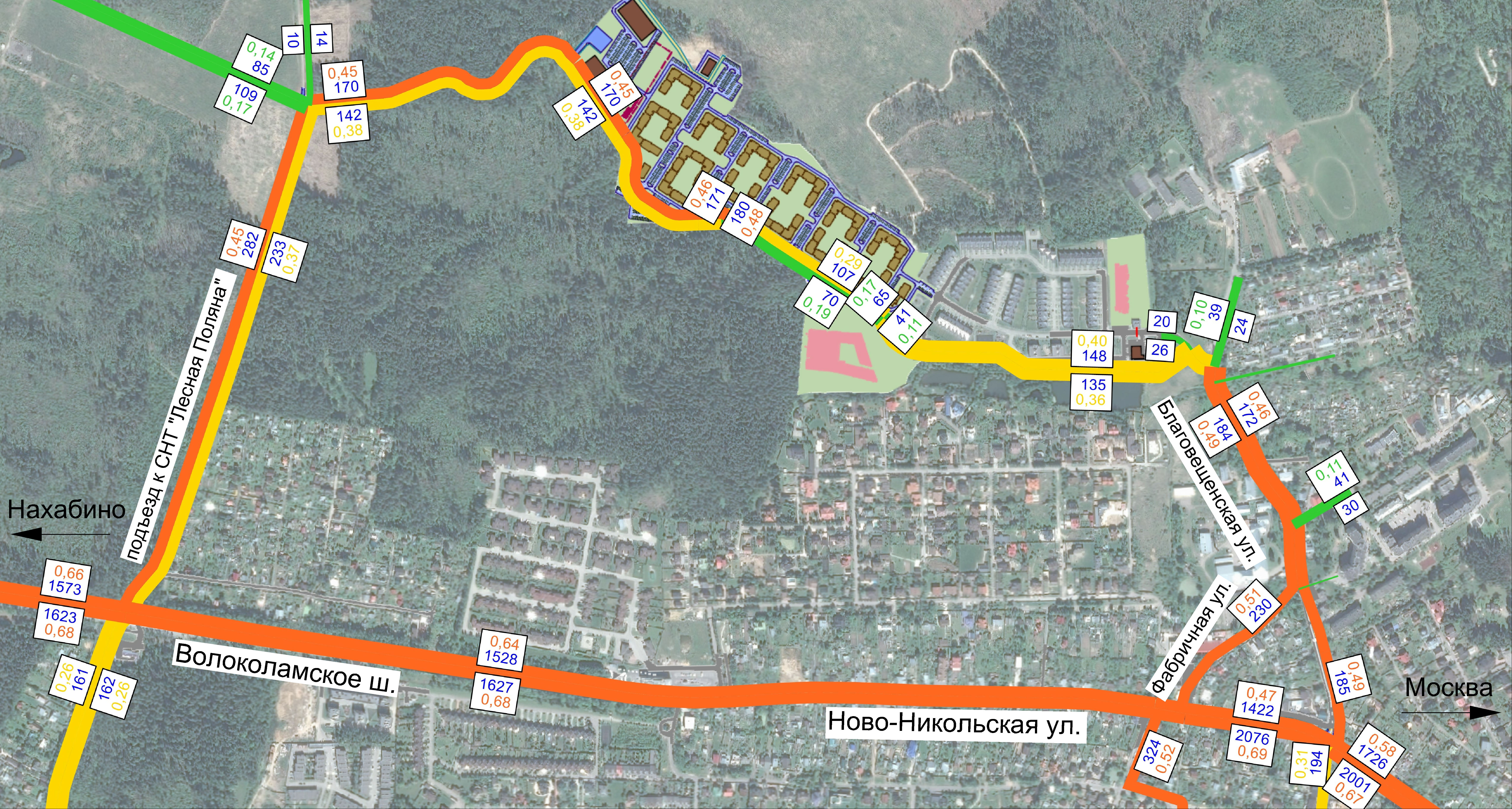Схема транспортного обслуживания, на основании моделирования транспортных потоков, территории «Жилого квартала» расположенного по адресу: Московская область, городской округ Красногорск, г. Красногорск, мкр. Опалиха