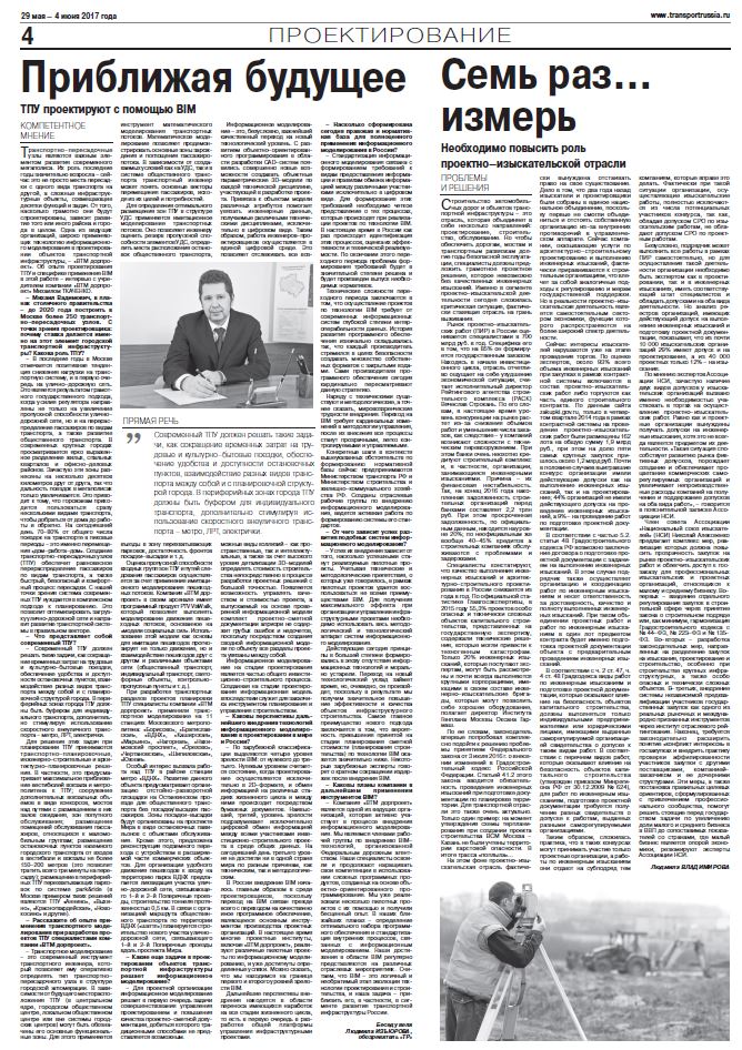 Транспортно–пересадочные узлы являются важным элементом развития современного мегаполиса. Их роль последние годы значительно возросла – сей- час это не просто места пересадки с одного вида транспорта на другой, а сложные инфраструктурные объекты, совмещающие десятки функций и задач. От того, насколько грамотно они будут спроектированы, зависит развитие того или иного района и города в целом. Одна из ведущих организаций, широко применяющих технологию информационного моделирования в проектировании объектов транспортной инфраструктуры, – «ВТМ дорпроект». Об опыте проектирования ТПУ и специфике применения BIM в этой работе – интервью с учредителем компании «ВТМ дорпроект» Михаилом ТКАЧЕНКО.