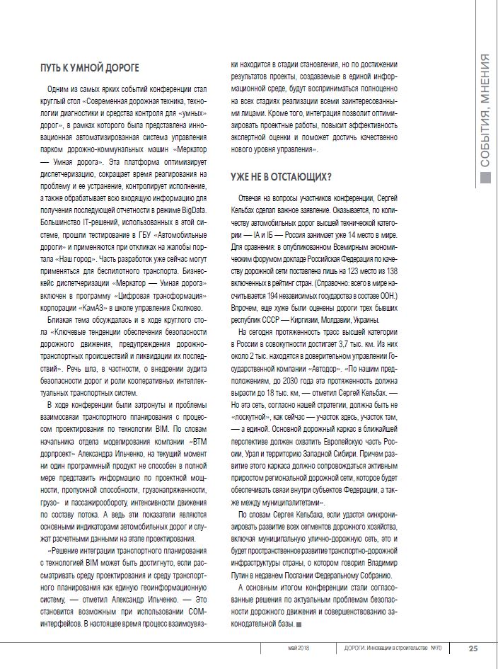 ...В ходе конференции были затронуты проблемы взаимосвязи транспортного планирования с процессом проектирования по технологии BIM. По словам начальника отдела моделирования компании "ВТМ дорпроект" Александра Ильченко, на текущий момент ни один программный продукт не способен в полной мере представить информацию по проектной мощности, пропускной способности, грузонапряженности, грузо-и пассажирообороту, интенсивности движения по составу потока. А ведь эти показатели являются основными индикаторами автомобильных дорог и служат расчетными данными на этапе проектирования. «Решение интеграции транспортного планирования c технологией BIM может быть достигнуто, если рассматривать среду проектирования и среду транспортного планирования как единую геоинформационную систему. Это становится возможным при использовании COM-интерфейсов. В настоящее время процесс взаимоувязки находится в стадии становления, но по достижении результатов проекты, создаваемые в единой информационной среде, будут восприниматься полноценно на всех стадиях реализации всеми заинтересованными лицами..."