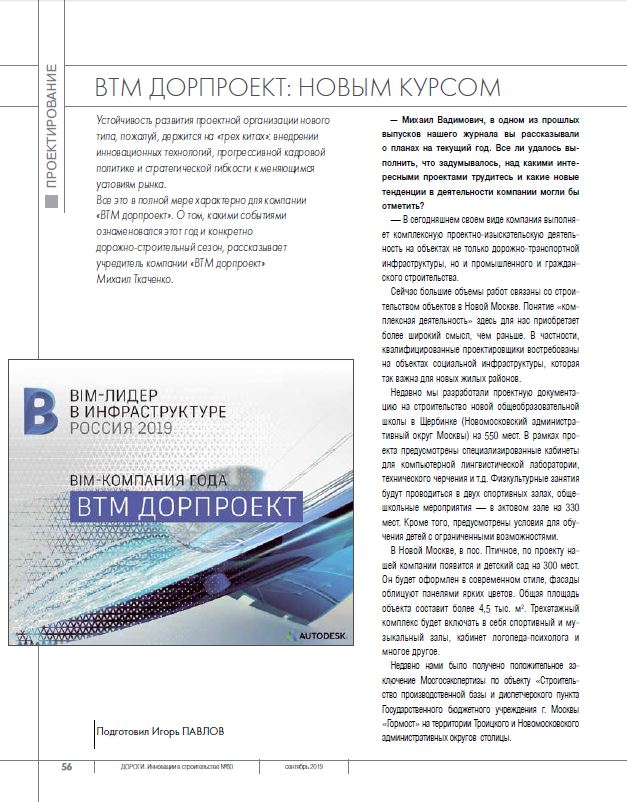 Устойчивость развития проектной организации нового типа, пожалуй, держится на «трех китах»: внедрении инновационных технологий, прогрессивной кадровой политике и стратегической гибкости к меняющимся условиям рынка. Все это в полной мере характерно для компании «ВТМ дорпроект».