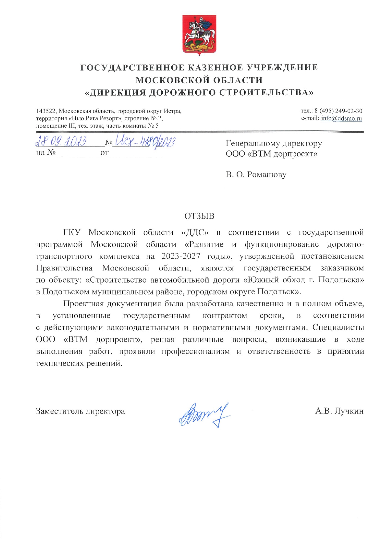Проектная документация была разработана качественно и в полном объеме, в установленные государственным контрактом сроки, в соответствии с действующим законодательством и нормативными документами. Специалисты ООО "ВТМ дорпроект", решая различные вопросы, возникавшие в ходе в ходе выполнения работ, проявили профессионализм и ответственность в принятии технических решений.
