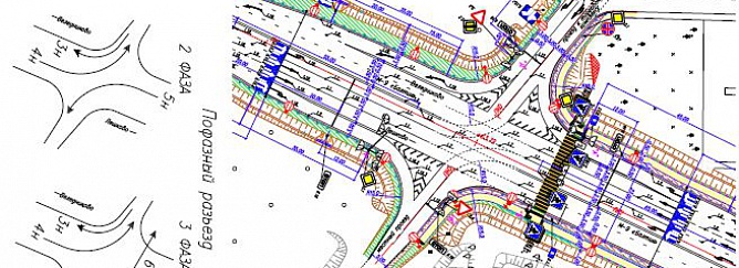 С целью обеспечения безопасности дорожного движения и увеличения пропускной способности перекресток оборудуется светодиодными светофорами, расположенными на консольных опорах и транспортных колонках.